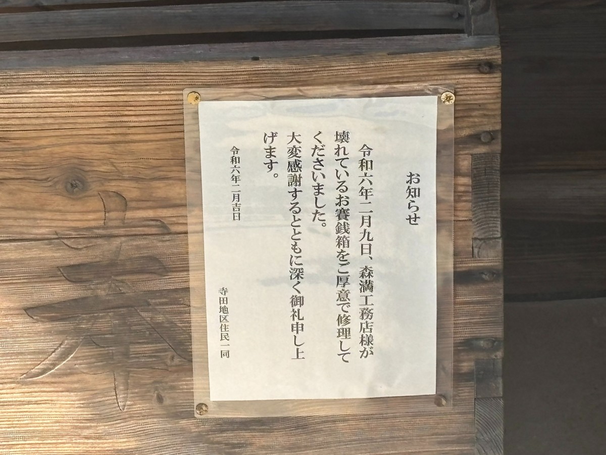(賽銭箱を御厚意で修理してくれたことへのお礼)